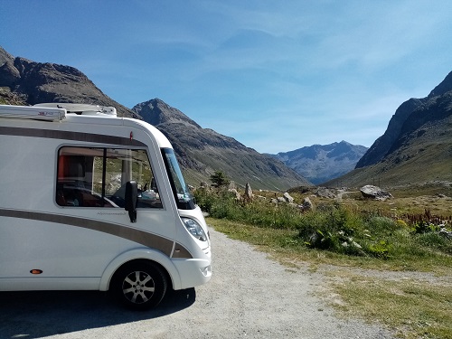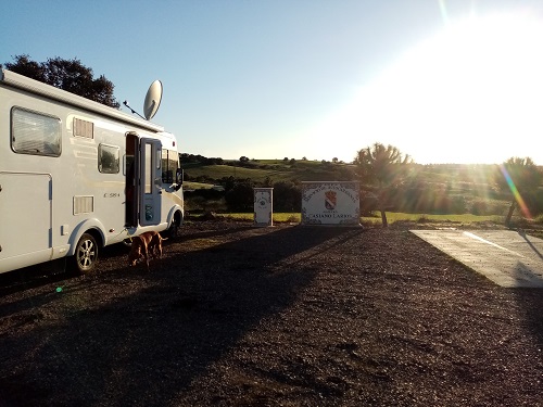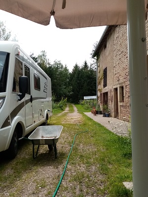 Large ex-field populated with about 90 European motorhomes. All services, though an upgrade would make a lot of sense. |