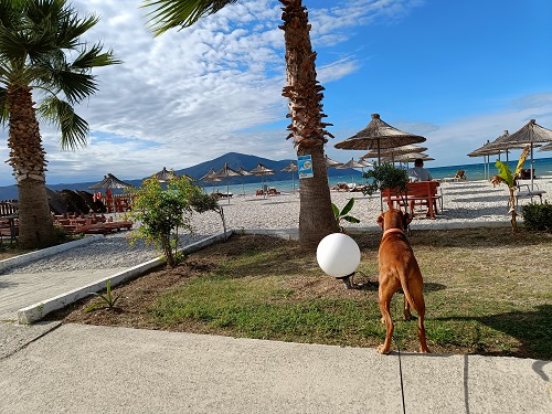 Ruth is washed in the night which did not make Zoa happy. The morning brings sunshine and we walk up to Berat Castle. I fancied a trip to the waterfalls up the valeey, but didn't want to take Ruth. so we move on down the coast to Vlore which does not please, so further south to a place beside the water.