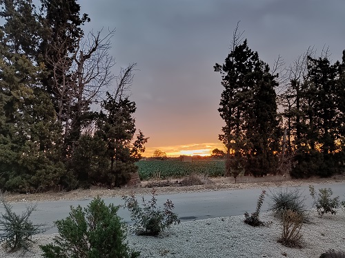 13-APR we visit my cousin, chat, walk and have lunch. The night is spent in a familiar place as the wind rattles the van for much of the night.