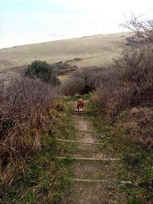 We take the chunnel, a new experience for Zoa, then we head to Beachy Head for a romp.