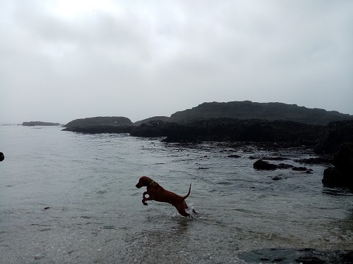 and head down the coast with a few stops including La Zania where he plays with another Vizsla.