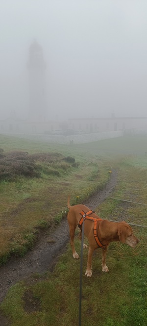 We then head north and get as far as Glasgow where Zoa meets Misty at my cousin's town. Sadly Woody, a great friend in Ayr has gone since April. We very much enjoy the coast of D&G and the massive windfarm at Whitlee. And we almost missed the lighthouse...